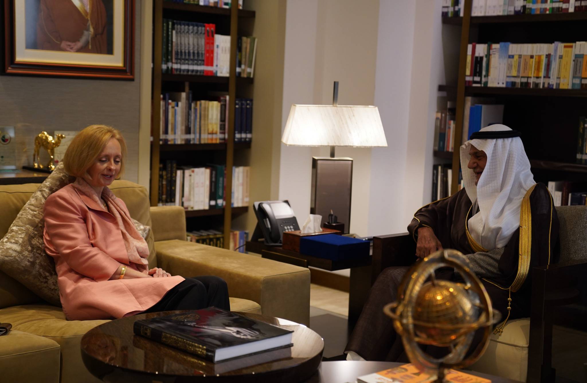 استقبل صاحب السمو الملكي الأمير تركي الفيصل، رئيس مجلس إدارة مركز الملك فيصل للبحوث والدراسات الإسلامية، في مكتبه القائمة بأعمال سفارة الولايات المتحدة الأمريكية لدى المملكة مارتينا سترونغ.