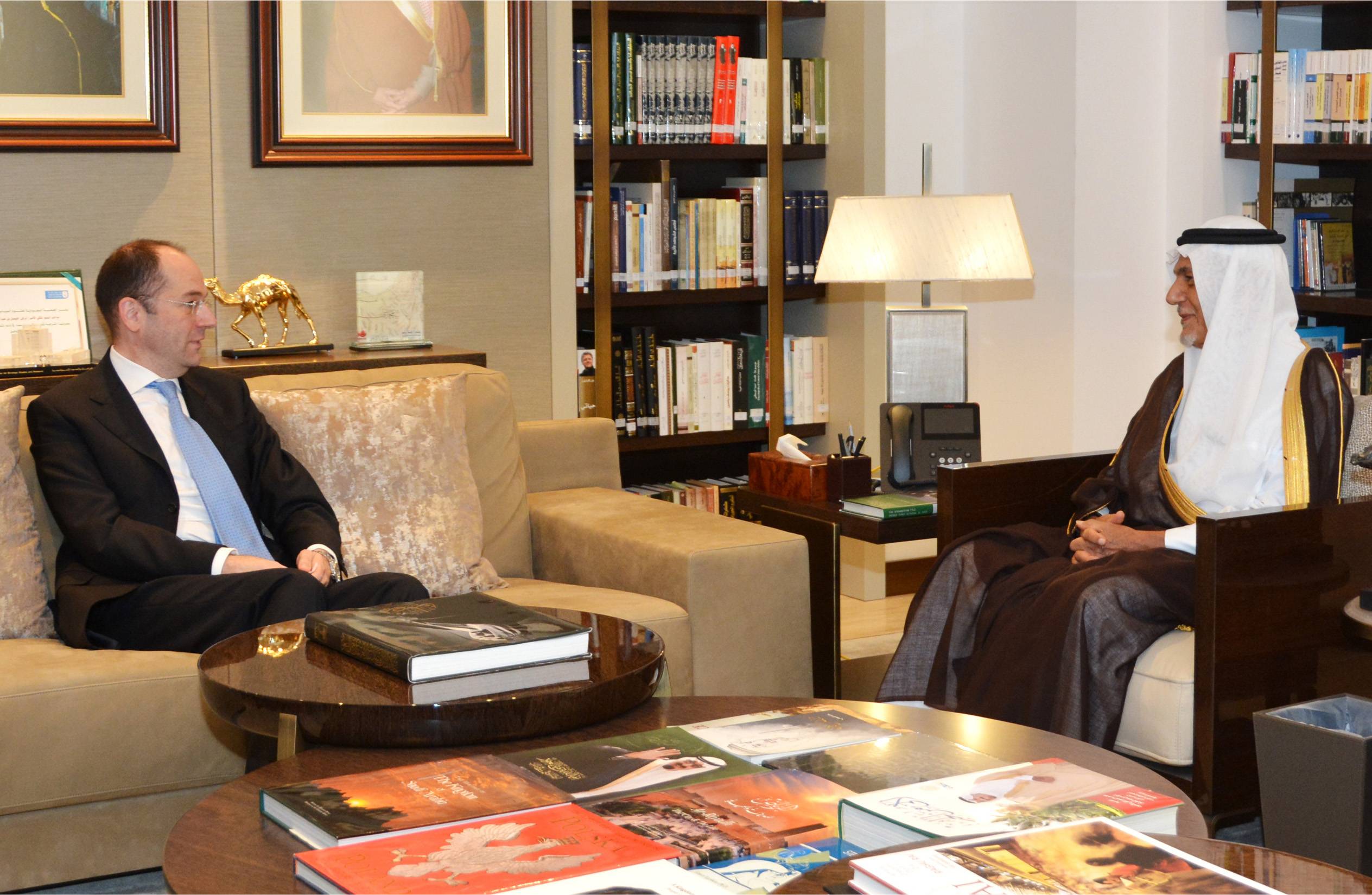 استقبل صاحب السمو الملكي الأمير تركي الفيصل، رئيس مجلس إدارة مركز الملك فيصل للبحوث والدراسات الإسلامية، في مكتبه، سعادة سفير النمسا لدى المملكة العربية السعودية جورج بويستينجر.