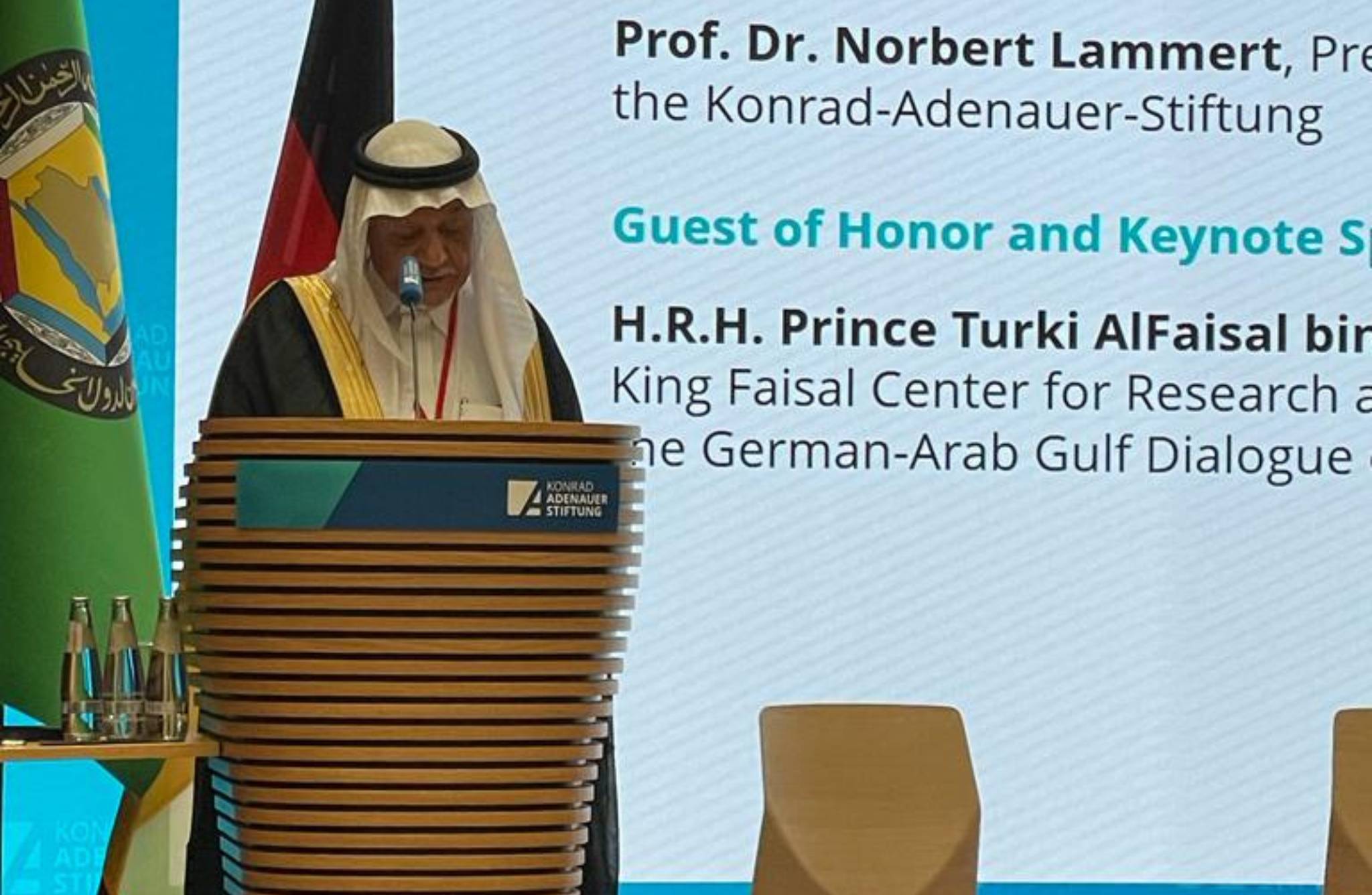 شارك صاحب السمو الملكي الأمير تركي الفيصل، رئيس مجلس إدارة مركز الملك فيصل للبحوث والدراسات الإسلامية، يوم الإثنين، ١ ذو الحجة ١٤٤٤هـ الموافق ١٩ يونيو ٢٠٢٣م، في مؤتمر “الحوار الألماني العربي الخليجي حول الأمن والتعاون”، عقدته جمعية الصداقة الألمانية العربية حيث ألقى سموه كلمة بعنوان “أوروبا والخليج.”